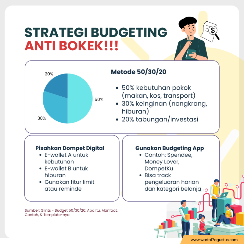 Untuk mengatasinya, metode 50/30/20 bisa diterapkan: 50% kebutuhan, 30% keinginan, 20% tabungan. Pisahkan dompet digital sesuai kategori agar lebih disiplin. Gunakan juga aplikasi keuangan seperti Spendee atau Money Lover untuk memantau pengeluaran harian.