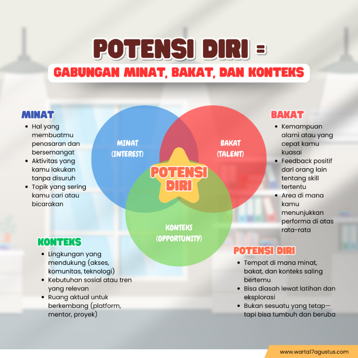 Potensi bukan sekadar bakat bawaan, tetapi hasil dari kombinasi minat, kemampuan, dan lingkungan. Hidup di era penuh peluang, Gen Z perlu menyadari bahwa mengenali potensi diri berarti membaca pola, bukan menunggu “panggilan.”