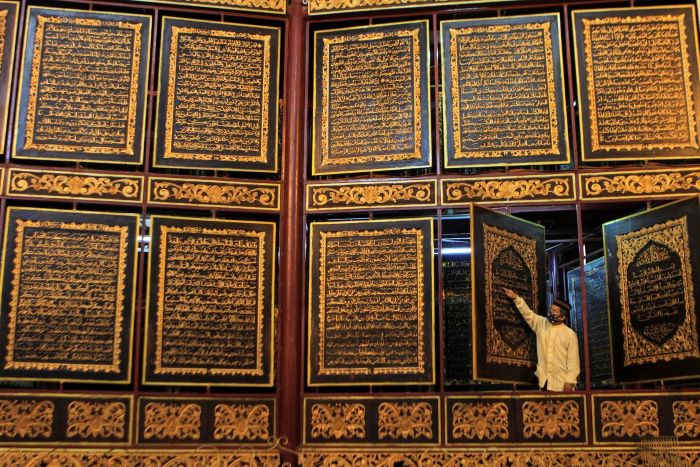 religi di Palembang, Sumatera Selatan. Karya ukir monumental ini bukan hanya menunjukkan keindahan s...